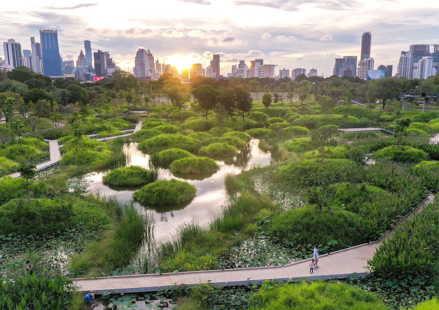 Kongjian Yu se inspiró en las tradiciones agrícolas para su propuesta de “ciudades esponja“ para que por medio de la restauración ambiental ofrecer soluciones de adaptación al cambio climático. La idea central del concepto es desarrollar ciudades versátiles, que absorban el agua en vez de rechazarla, que la acumulen y puedan reciclarla en épocas secas o para usos como el riego. En lugar de canales rectos y de paredes de hormigón, busca recuperar y ampliar los cauces naturales de los ríos, además de la construcción de parques y estanques, que pueden retener el agua en épocas de lluvias intensas.